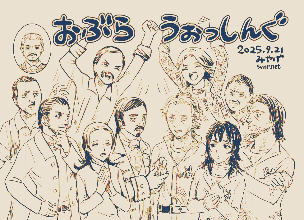 ちょっと仕事+αに精神と時間割かれすぎて、新刊(2冊目)平日全然進められてないんですが、久々にオブラディンメンズ(レディもいるよ)描いたらめっちゃ楽し~~~~~~!!!!